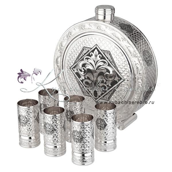 Серебро 875 пробы.Набор из 6 стопок (гильз) и фляги станет прекрасным и полезным подарком для любителей охоты! Набор в удобном подарочном чехле с отсеками для фляги и стопок. Гарантия высшего качества от фирменного магазина!