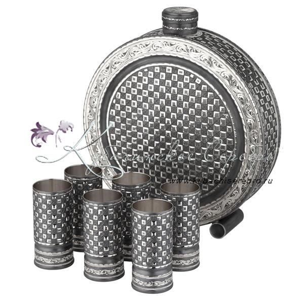 Серебро 875 пробы. Набор из 6 стопок (гильз) и фляги станет прекрасным и полезным подарком для любителей охоты! Набор в удобном подарочном чехле с отсеками для фляги и стопок. Гарантия высшего качества от фирменного магазина!