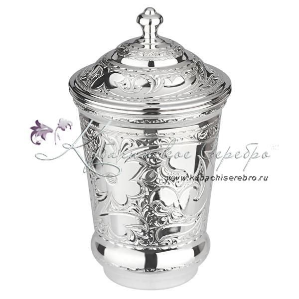 Стакан с крышкой 999 пробы на 320 мл "Цветочный", арт №6193
