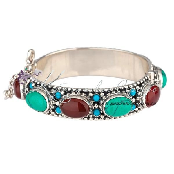 Серебро 875 пробы. Вставка - камень бирюза, сердолик. Изделие в фирменной подарочной упаковке.