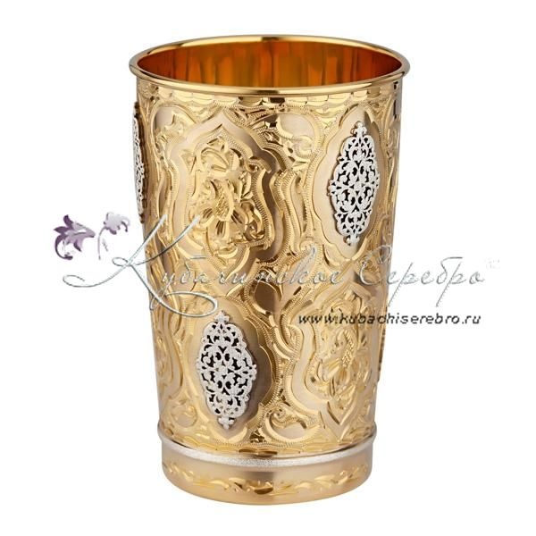 Позолоченный стакан с выпиленными узорами на 300 мл , арт №6174