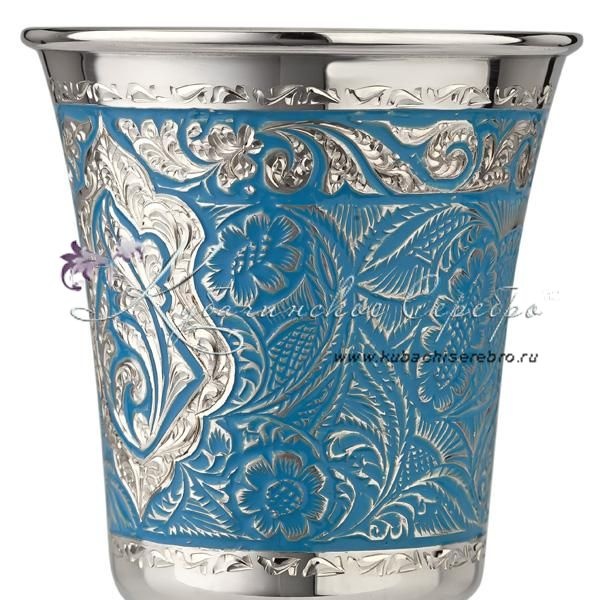 Серебряный стакан "Небесный" с холодной эмалью на 180 мл, арт №6122