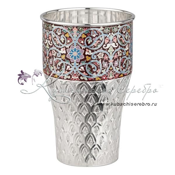 Стакан из серебра с эмалью 999 пробы на 470 мл, арт №8170/1