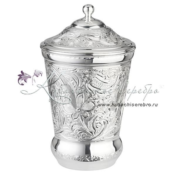 Большой стакан с крышкой 999 пробы на 700 мл "Цветочный", арт №6220