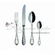 Серебро 925 пробы. ПАО "Павловский завод им.Кирова". В набор входят: ложка чайная - 6 шт., ложка столовая – 6 шт., вилка столовая – 6 шт., нож столовый – 6 шт.