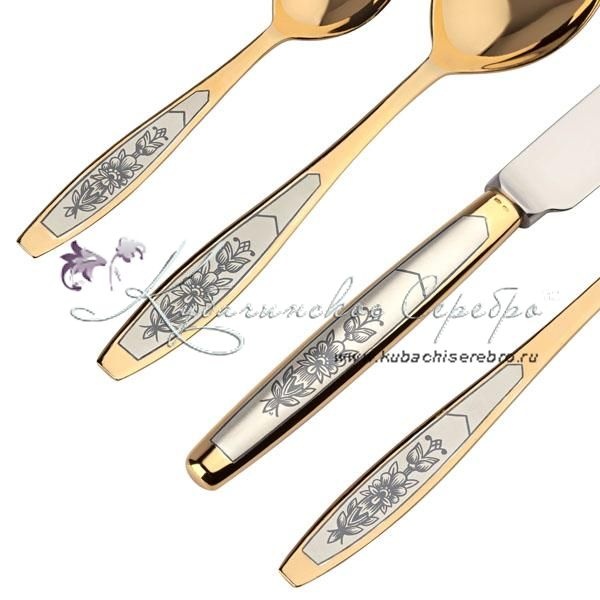 Набор столовых приборов 24 предмета на 6 персон "Астра", с позолотой , арт №8109