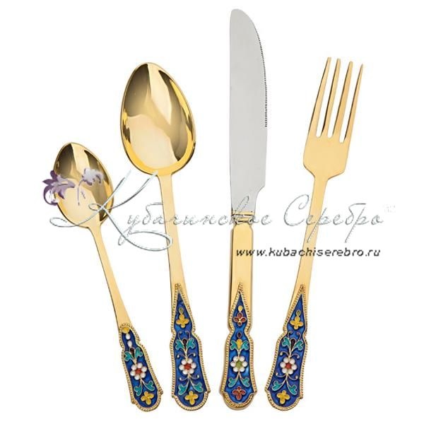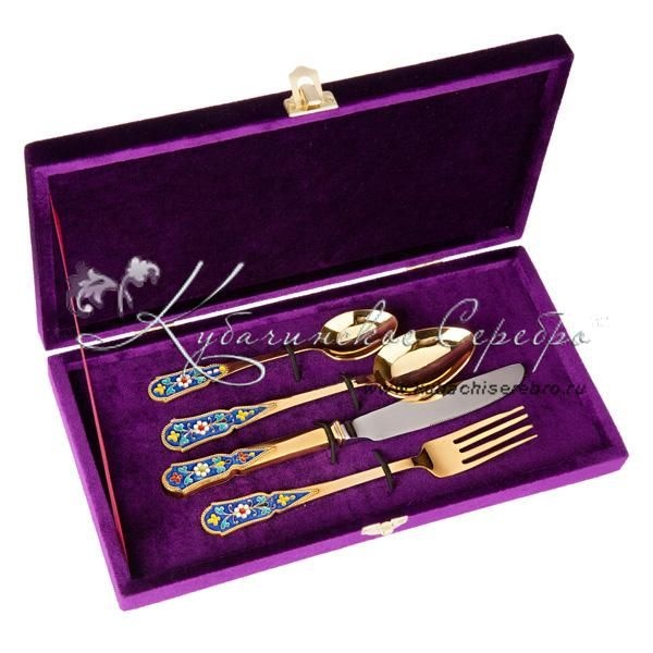 Набор столовых приборов 4 предмета с эмалью, серия "Версаль" , арт №1677