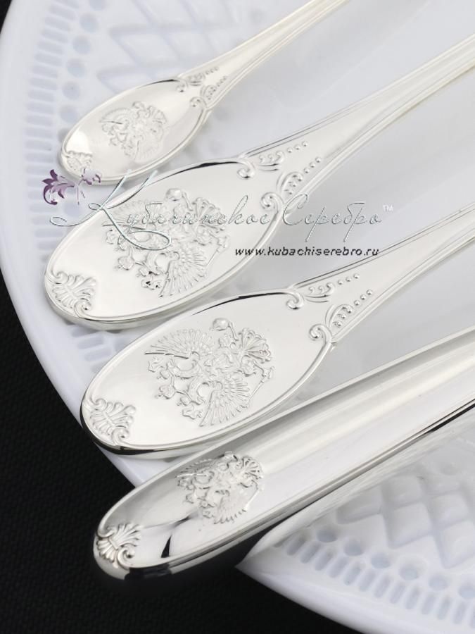 Серебро 925 пробы. В набор входят: ложки столовые 12 шт, ложки чайные 12 шт,вилки столовые 12 шт , ножи столовые 12 шт.Гарантия высшего качества от фирменного магазина! Клинок ножа - нержавеющая сталь. Коллекция классического столового серебра - это союз многовековых традиций и современных технологий, эстетичных форм и эргономичного дизайна. Все предметы коллекции созданы, чтобы стать заветными семейными ценностями и передаваться из поколения в поколения. Стильные и полезные, серебряные столовые приборы помогают победить негативное воздействие внешней среды и укрепляют иммунитет всей семьи день за днём.