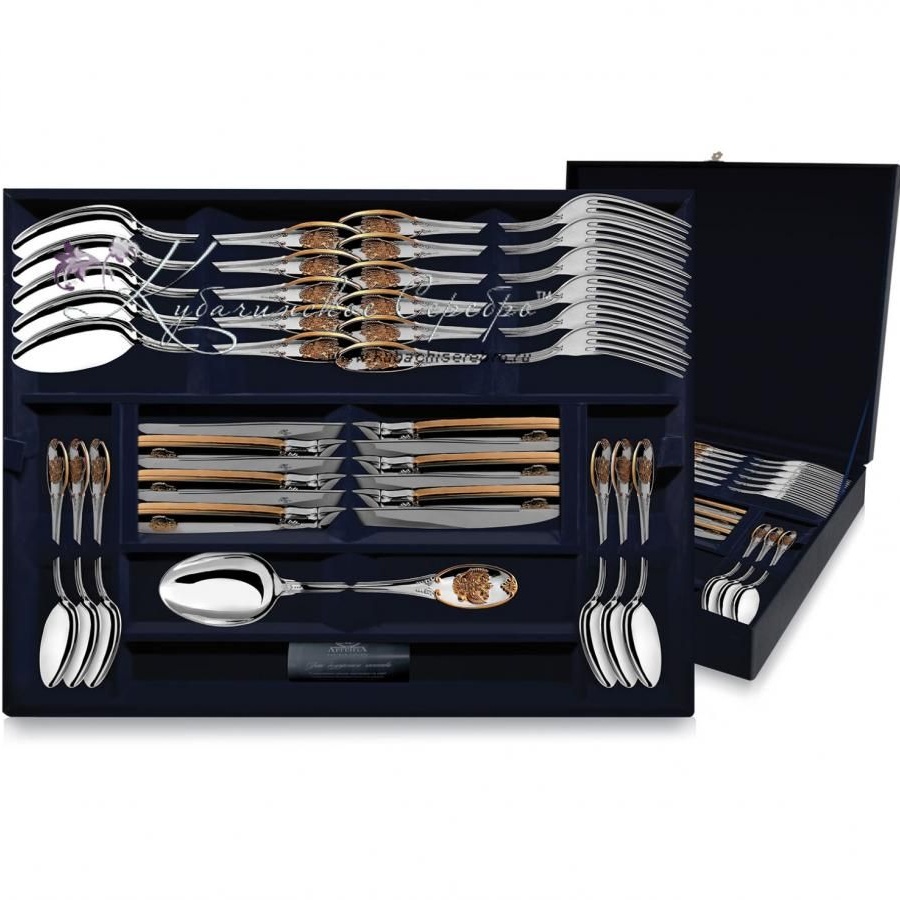 Набор столовых приборов с позолотой "Единство", 24 предмета, арт №1162