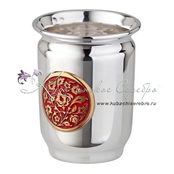 Стопка 999 пробы с позолотой и красной эмалью , арт №1355