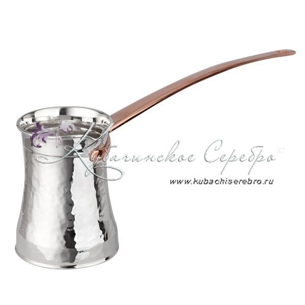 Турка из серебра 999 пробы на 270 мл, с медной ручной , арт №6415