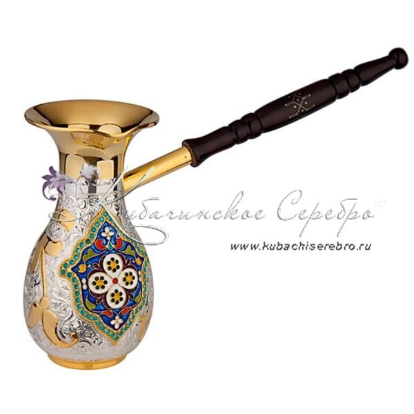 Турка с позолотой и горячей эмалью на 250 мл , арт №1716