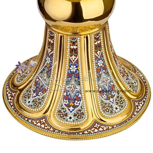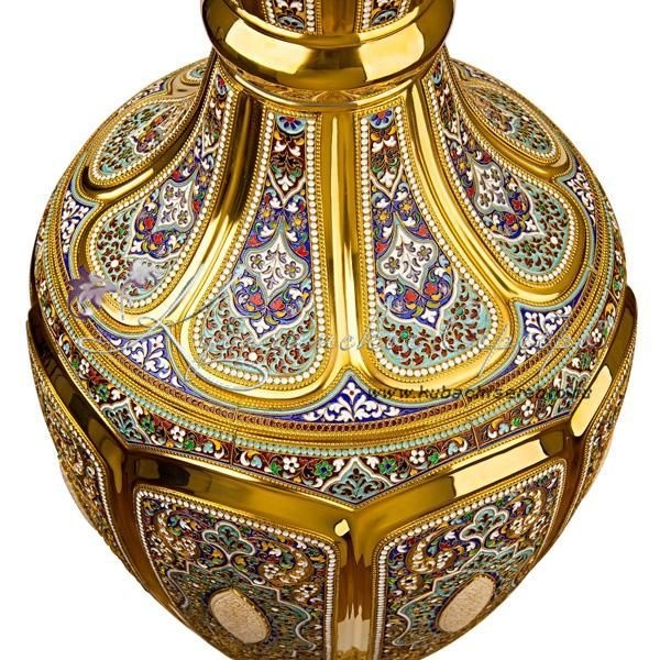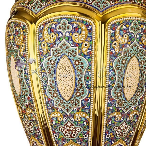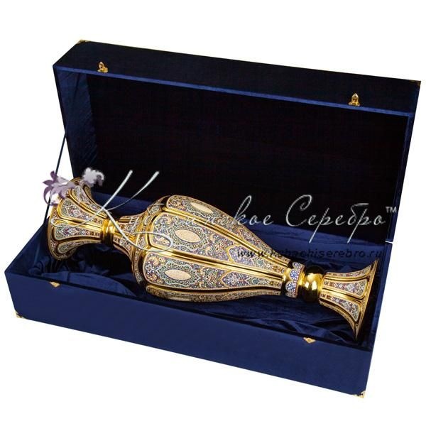 Серебро 875 пробы. Покрыта позолотой 999 пробы. Вставки - горячая эмаль, слоновая кость. Ручная работа от кубачинских ювелиров! Добавит роскоши в ваш дом!