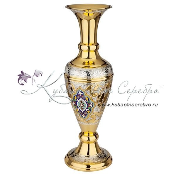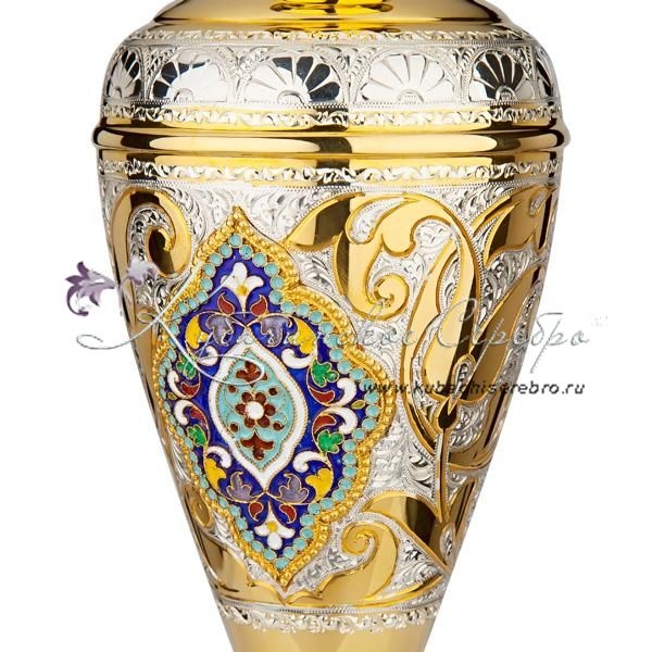 Серебро 875 пробы. Покрыта позолотой 999 пробы. Вставка - горячая эмаль!