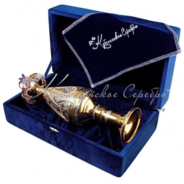 Серебро 875 пробы. Покрыта золотом 999 пробы. Вставка - горячая эмаль!