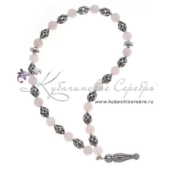 Чётки из серебра с розовым кварцем, арт №8432/3