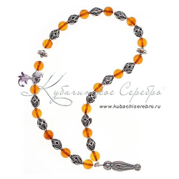 Чётки оксидированые с янтарем , арт №8432/6