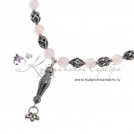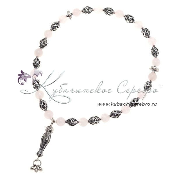 Чётки серебряные с розовым кварцем, арт №4519/6