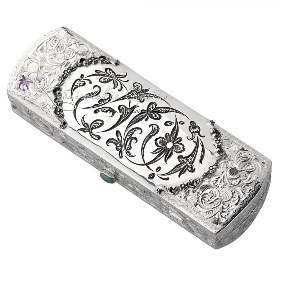 Серебро 875 пробы. Футляр с литыми вставками. Внутренняя часть покрыта флоком.