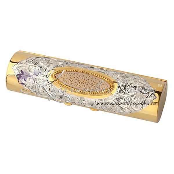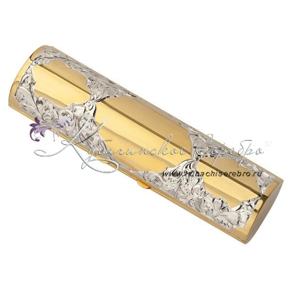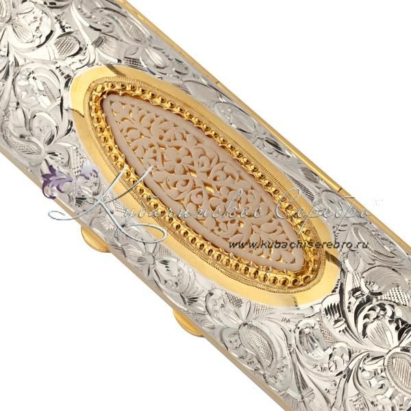 Серебро 875 пробы. С позолотой 999 пробы. Вставка-слоновая кость. Внутренняя часть обработана бархатом.