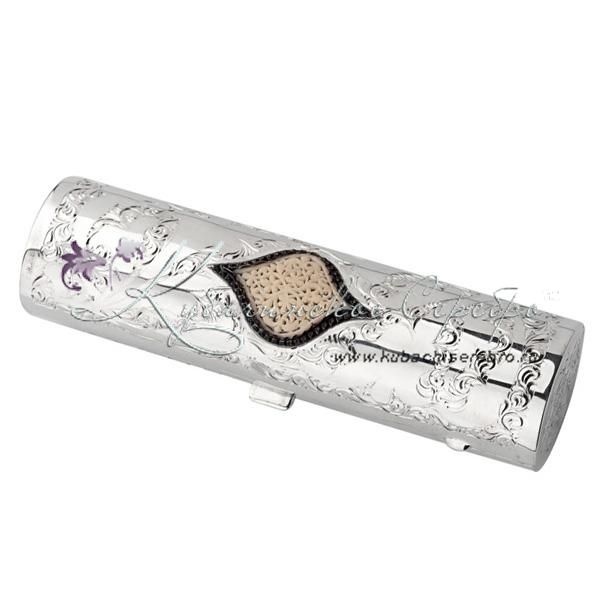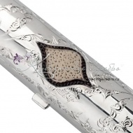 Серебро 875 пробы. Вставка - восстановленная слоновая кость. Внутренняя часть покрыта материалом карпет.