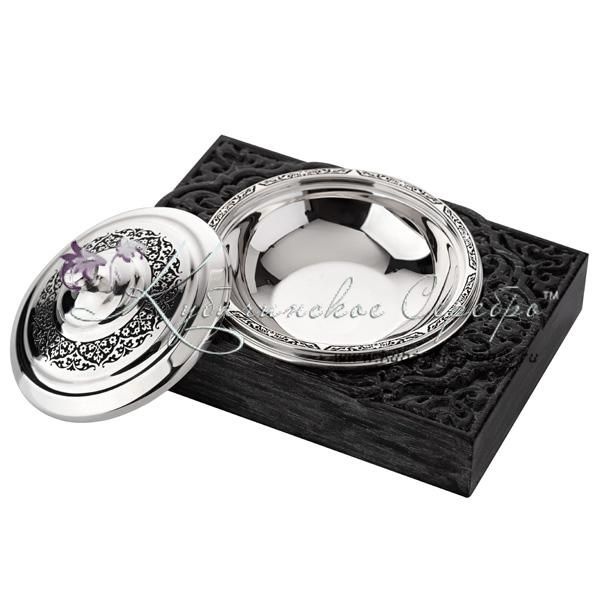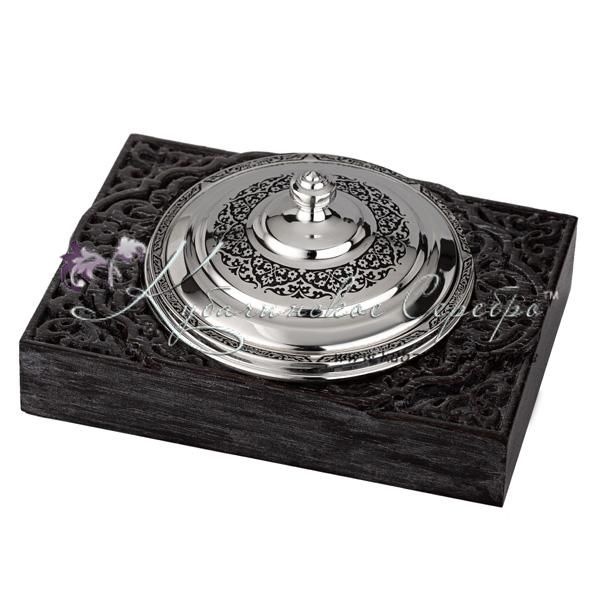 Серебро 875 пробы. Основание - дерево дуб, покрыта лаком.