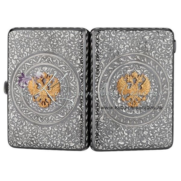 Портсигар с гербом двухсторонний "Black series", арт №6866