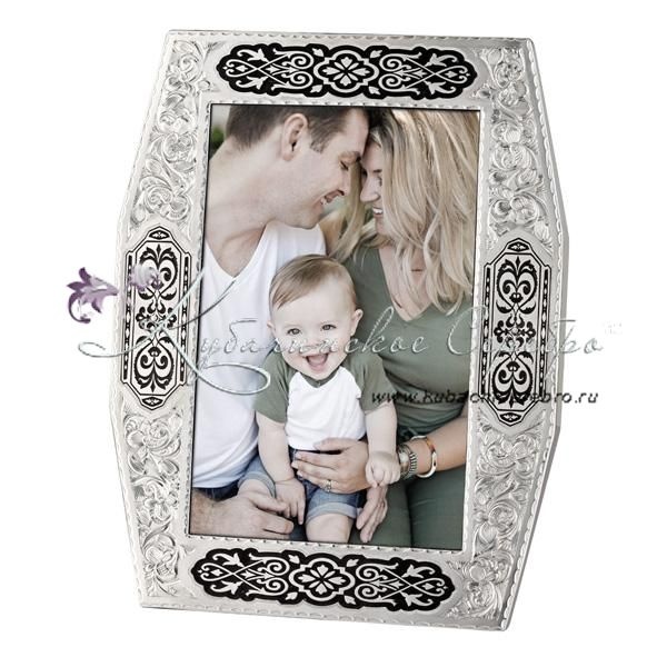 Корпус фоторамки выполнен из серебра 875 пробы, с удобной подставкой. Формат фотографии: 9, 5/14,5 см.