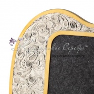 Корпус фоторамки выполнен из серебра 875 пробы,позолота 999 пробы, с удобной подставкой. Формат фотографии: 9, 5 / 14,5 см.
