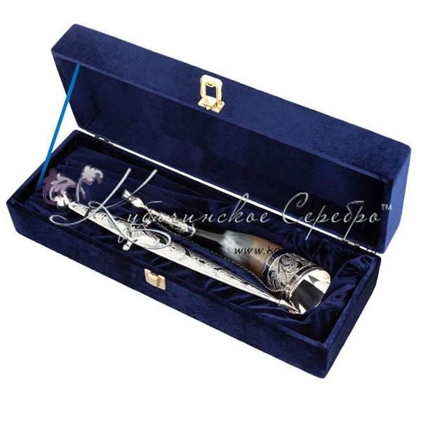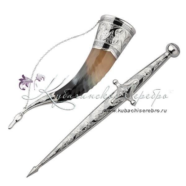 Мужской набор из серебра, кинжал+рог , арт №7180