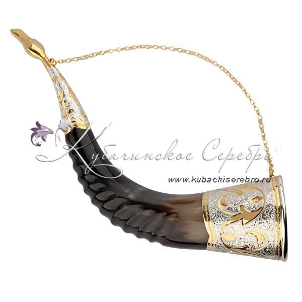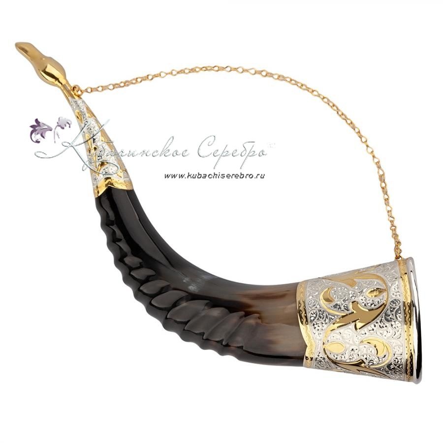 Серебро 875 пробы. Рог с питьевой чашей. Гарантия высшего качества от фирменного магазина!