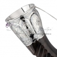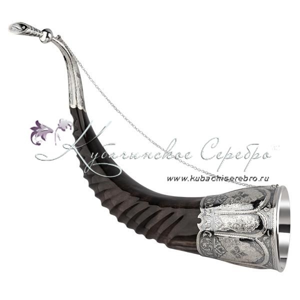 Рог тура серебряный, с питьевой чашей! , арт №1331