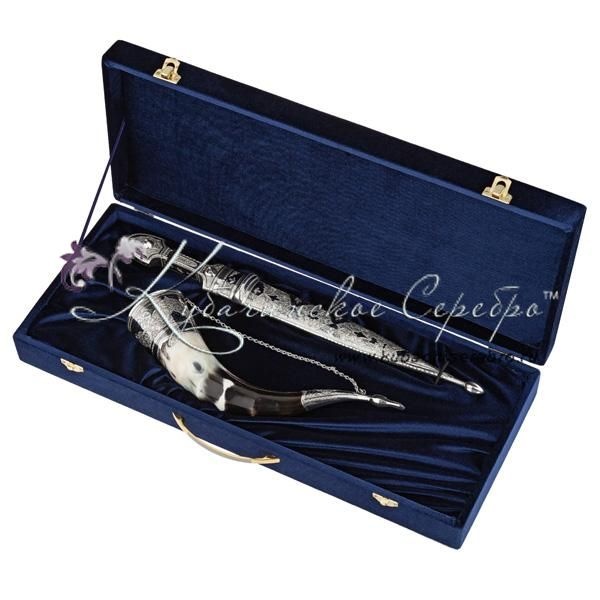 Мужской набор из серебра, кинжал + рог (Новинка), арт №7215