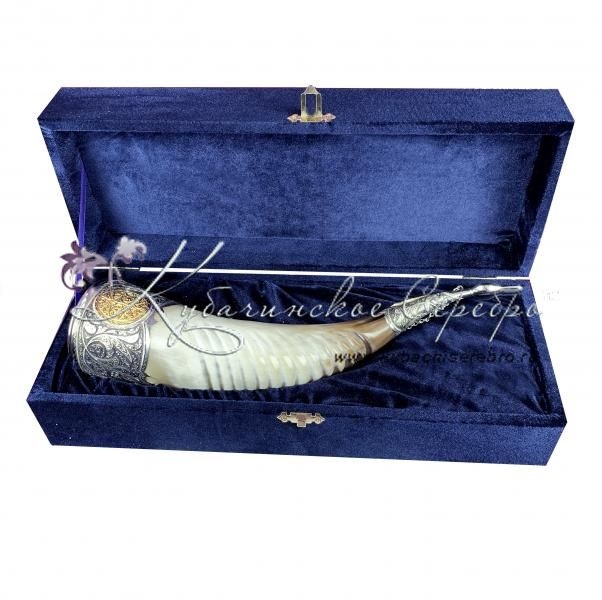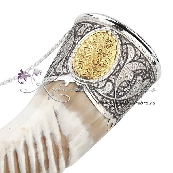 Серебро 875 пробы. Покрыт позолотой 999 пробы. Рог с питьевой чашей.