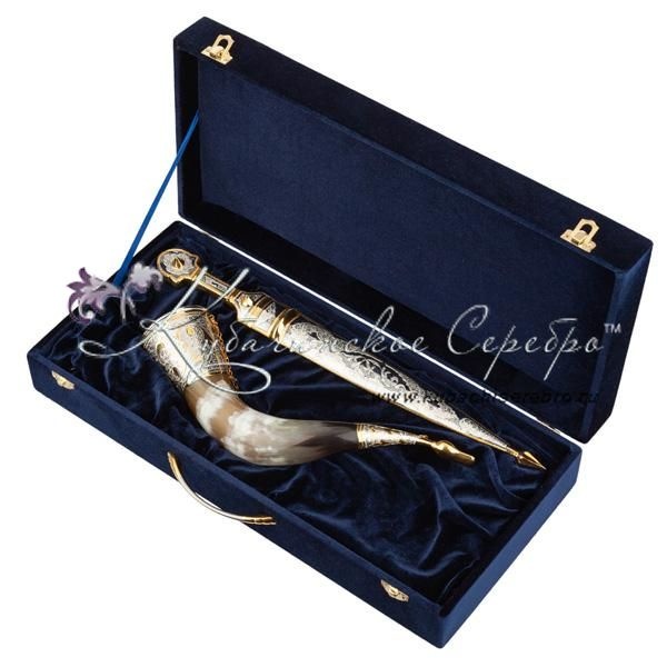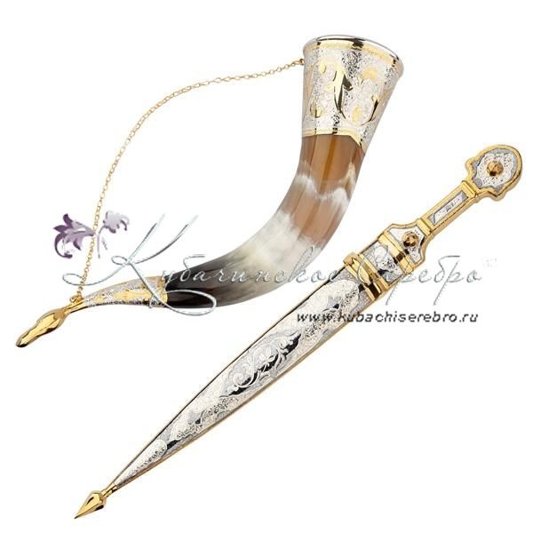 Позолоченный набор, кинжал + рог с питьевой чашей (Новинка), арт №7219