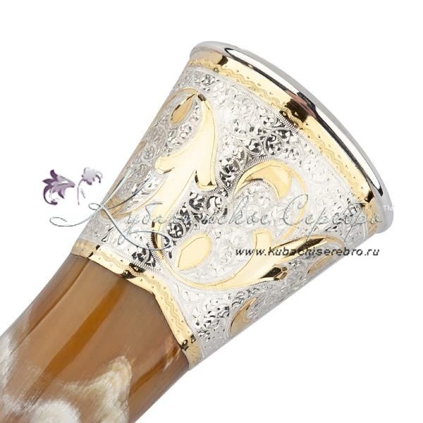 Серебро 875 пробы, покрыт позолотой 999 пробы. Выполнено вручную мастерами Кубачи! Рог с питьевой чашей.