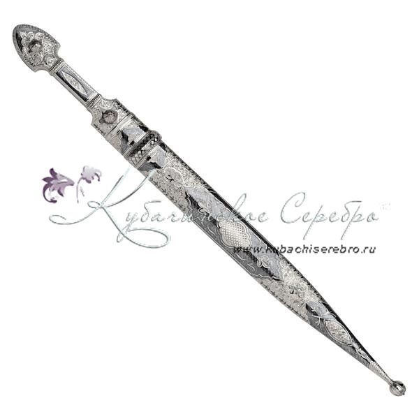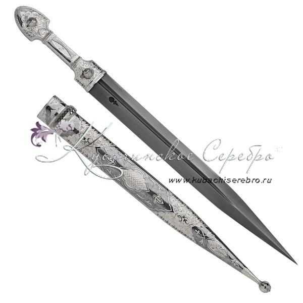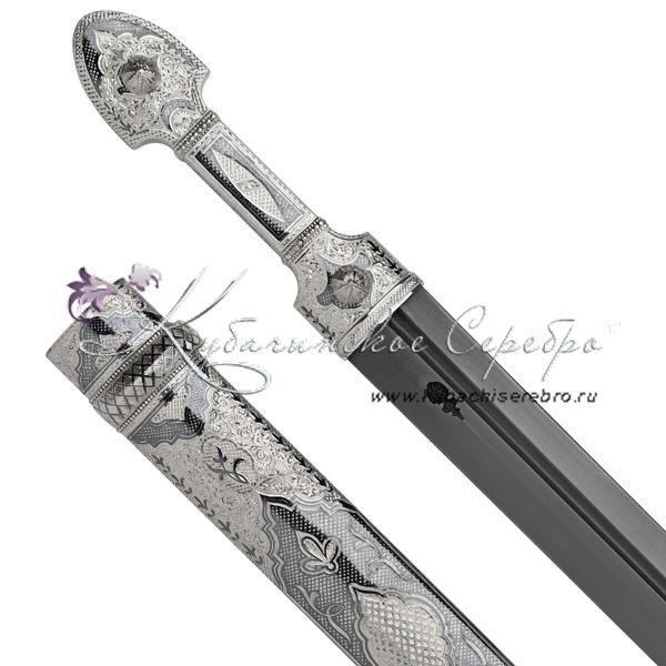 Серебро 875 пробы. Средний вес серебра в изделии 300 гр. Клинок - каленный боевой булат! По древнейшим традициям!