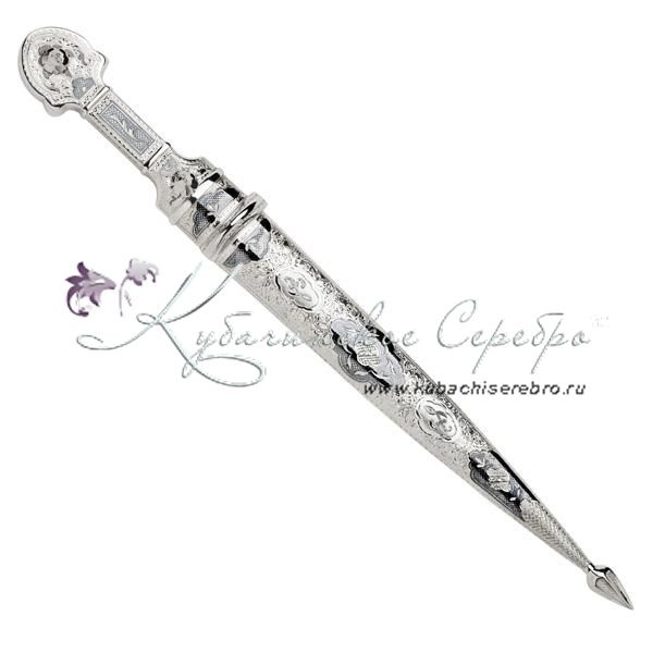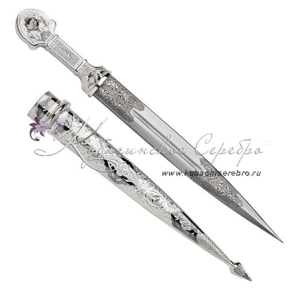 Серебро 875 пробы. Клинок - кизлярская сталь. Средний вес серебра в изделии 100 гр. Гарантия высшего качества!