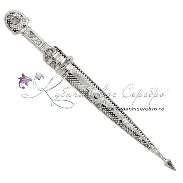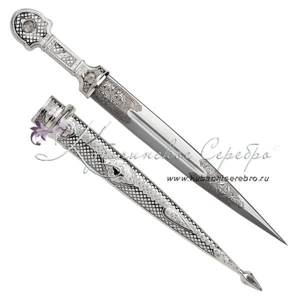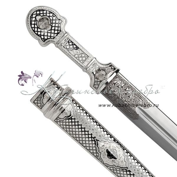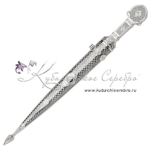 Серебро 875 пробы. Средний вес серебра в изделии 100 гр. Клинок - кизлярская сталь. Гарантия высшего качества от фирменного магазина!