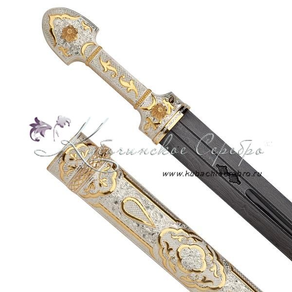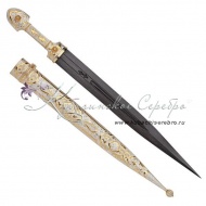 Серебряная 875 пробы, с позолотой 999 пробы. Клинок - дамасская сталь! Средний вес серебра в изделии 300 гр Гарантия высшего качества от фирменного магазина!