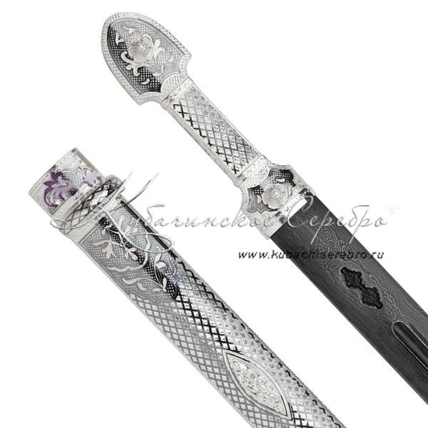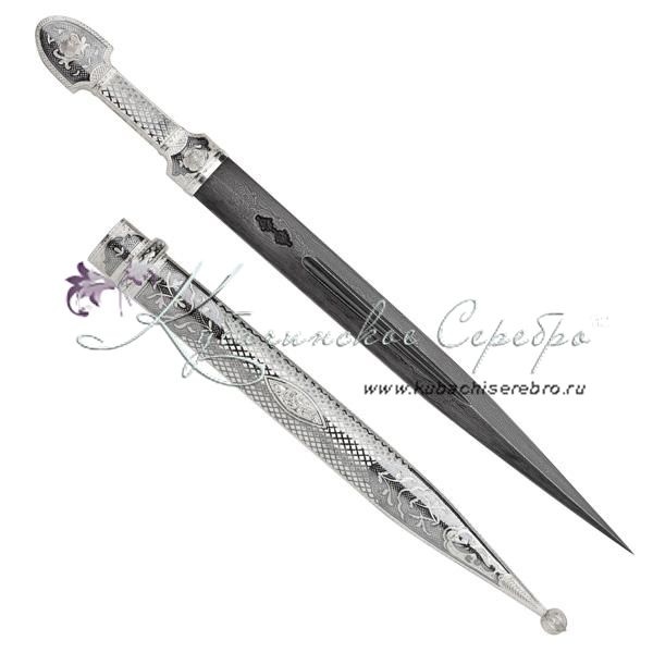 Серебро 875 пробы. Клинок - даммаская сталь. Средний вес серебра в изделии 200 гр. Изготовлен кубачинскими ювелирами по древнейшим традициям! Гарантия высшего качества!