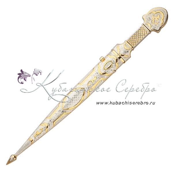 Кинжал серебряный с позолотой, 38 см , арт №5082