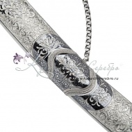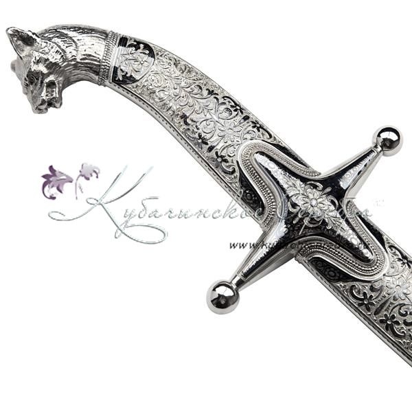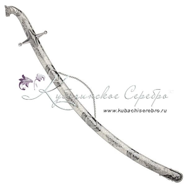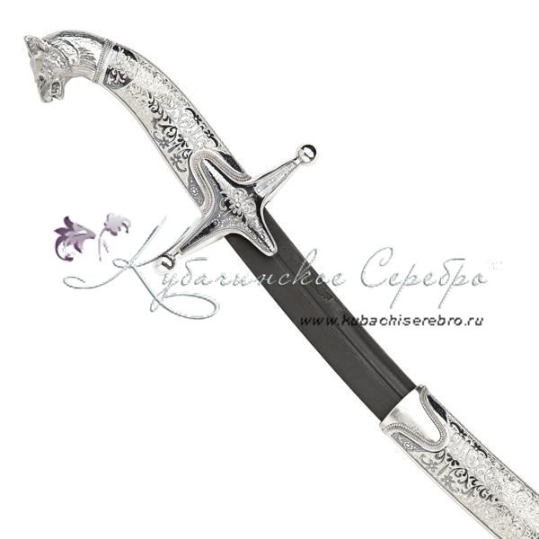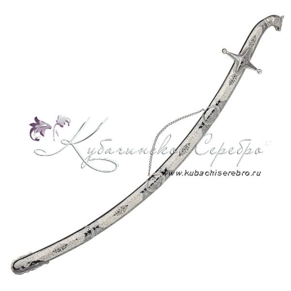 Серебро 875 пробы. Боевая сабля, клинок - дамасская сталь, с клеймом мастера! Средний вес серебра в изделии 350 гр. В премиумном исполнении от кубачинских мастеров! Гарантия высшего качества от фирменного магазина!