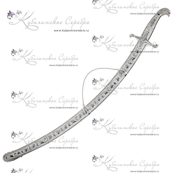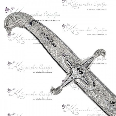 Серебро 875 пробы. Клинок - каленая сталь. Средний вес серебра в изделии 350 гр. В премиумном исполнении от кубачинских мастеров! Гарантия высшего качества от фирменного магазина!