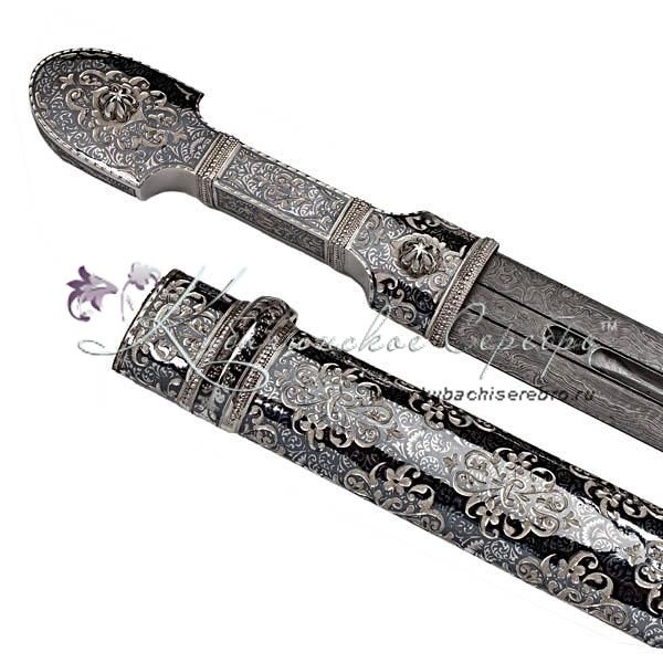 Серебро 875 пробы. Клинок - дамасская сталь! Изготовлен по древнейшим традициям ! Средний вес серебра в изделии 300 гр. Гарантия высшего качества!