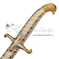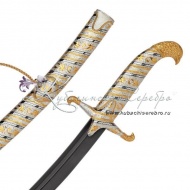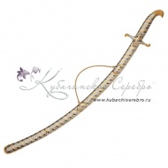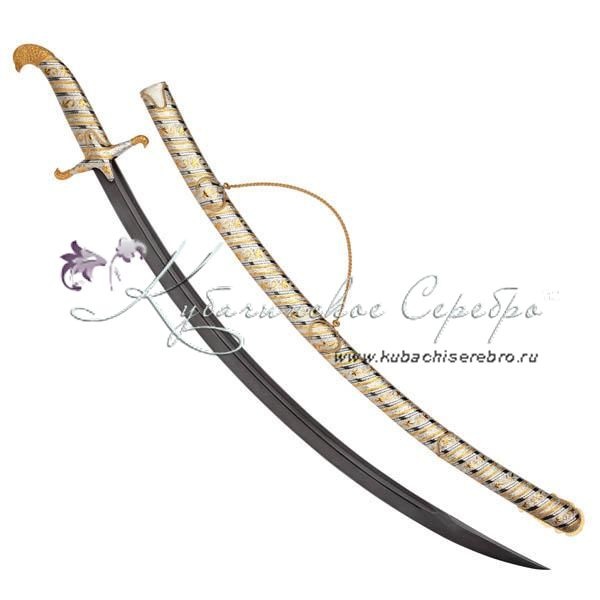 Серебро 875 пробы. Покрыта позолотой 999 пробы. Клинок - калёная сталь! Боевая булатная сталь. Средний вес серебра в изделии 400 гр. Сабля, выполненная великим кубачинским мастером! Гарантия высшего качества от фирменного магазина!