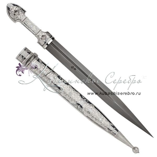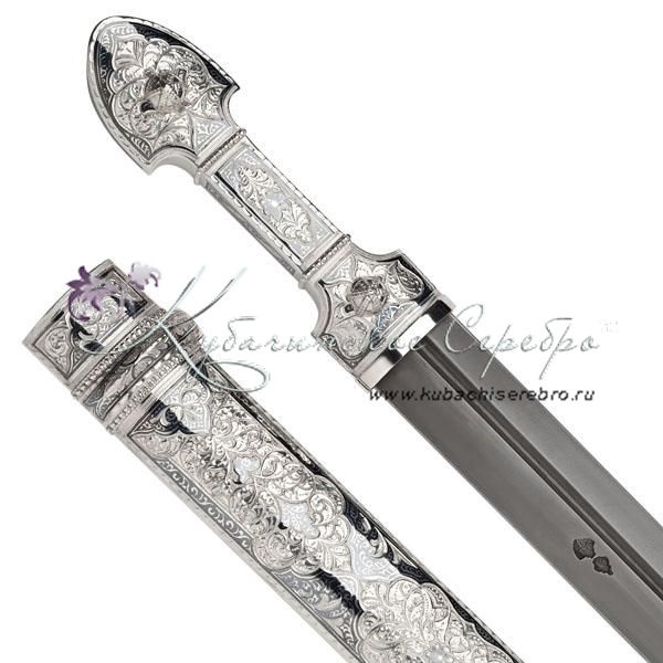 Серебро 875 пробы. Клинок - каленая сталь! Средний вес серебра в изделии 300 гр. Гарантия высшего качества от фирменного магазина!