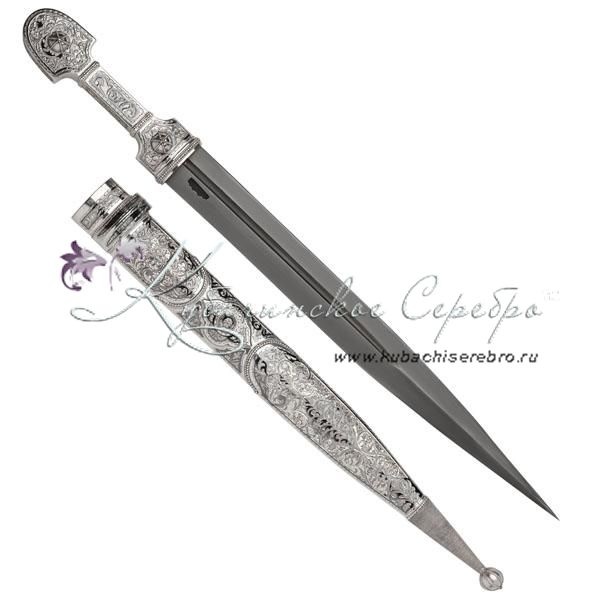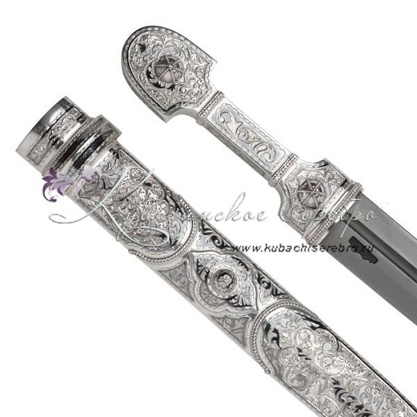 Серебро 875 пробы. Клинок - каленая сталь! Средний вес серебра в изделии 300 гр. Гарантия высшего качества от фирменного магазина!
