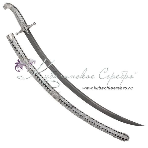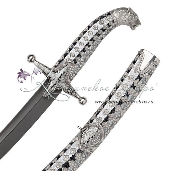 Серебро 875 пробы. Клинок - калёная сталь. Средний вес серебра в изделии 350 гр. Гарантия высшего качества от фирменного магазина!