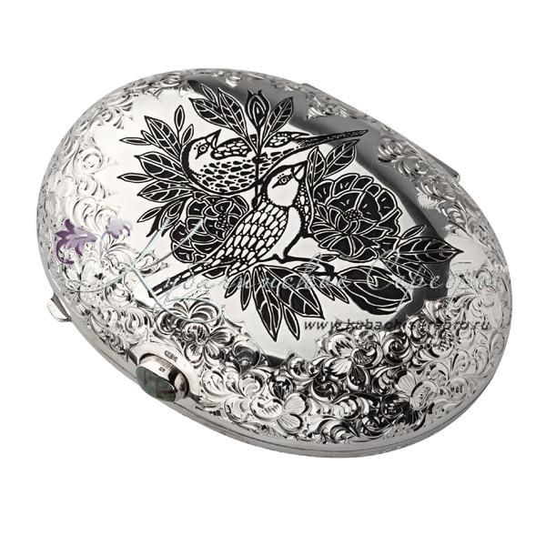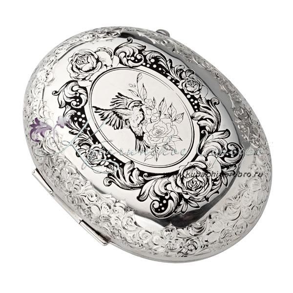 Серебро 875 пробы. Внутренняя часть покрыта материалом карпет. Вставка - камень бирюза.